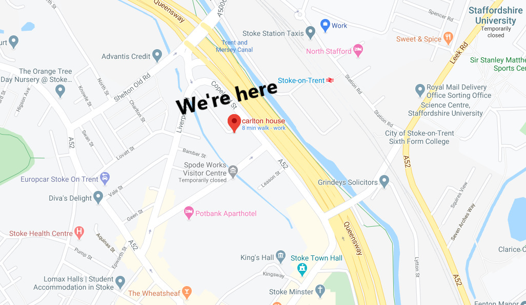 Don’t worry, we’ve not moved far, in-fact our office is only a stone’s throw away, in central Stoke.